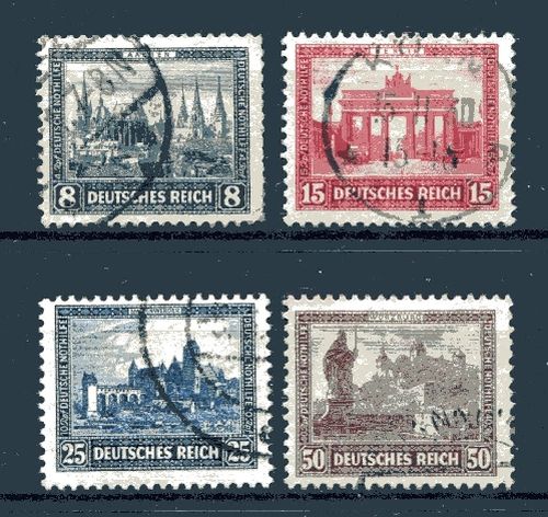 1930 Mi.Nr. 450/53 , Deutsche Nothilfe. Bauwerke (I), kompletter Satz, Rundstempel. Mi.(140.--)Euro.