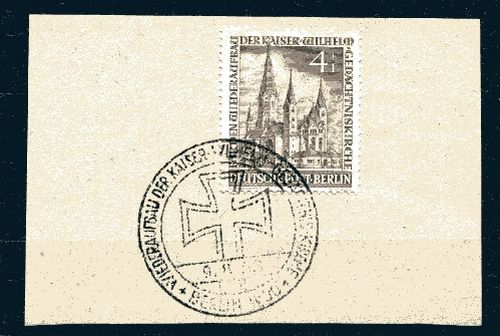 1953 Mi.Nr. 106 , , Gedächtniskirche, mit Berlin Sonderstempel, auf Briefstück.