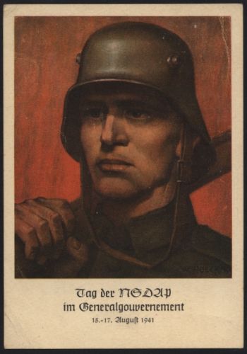 1941 Tag der NSDAP im Generalgouvernement 15.-17-August 1941 mit Sondermarke Mi.Nr. 43 Hof der Universität und Sonderstempel "KRAKAU 15.-17.8.41 Ein Jahr NSDAP im Generalgouvernement" echt befördert nach Bleicherode Harz. Ecken minimal bestoßen.