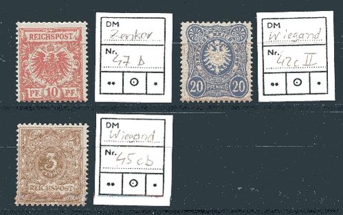 LIQUIDATIONSPOSTEN. 1889 Mi.Nr. 42cII, 45cb, 47b , Deutsches Reich alle gepr. BPP.
