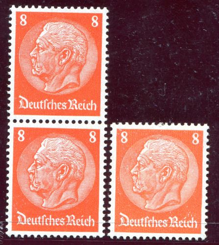 1933 Mi.Nr. 485I , senkrechtes Pärchen und Einzelmarke, mit Plattenfehler (D) von Deutsches offen.