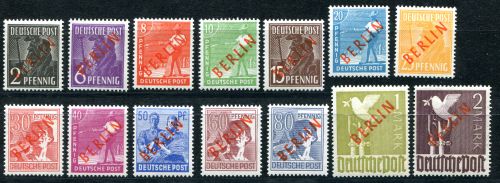 1949 Mi.Nr. 21/34 , Rotaufdruck mit Erstfalz, kompletter Satz. Mi.(550.--)Euro.