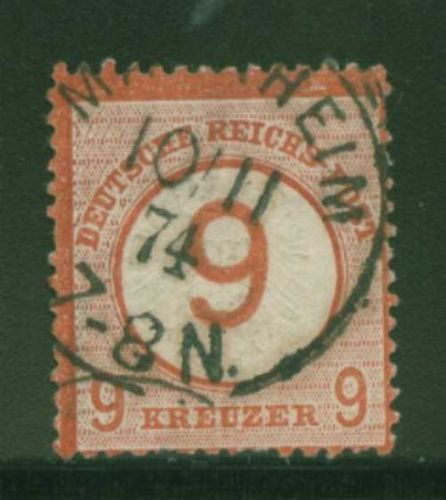 LIQUIDATIONSPOSTEN. 1874 Mi.Nr. 30 , 9 auf 9 Kr. rotbraun, kleine Type, mit Mannheimer Stempel 10.11.74 kleine Zähnungsunebenheiten, gepr. SOMMER BPP. Mi.(440.--)DM. Im Michel Katalog stark unterbewertet.