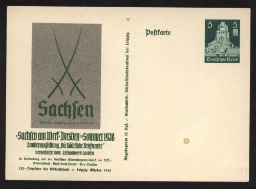 1938 Ausstellung SACHSEN P269, Karte ungebraucht.