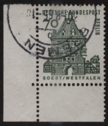 1964 Mi.Nr. 248 , Deutsche Bauwerke 70 Pfennig Bogenecke unten links, zentrisch gestempelt.