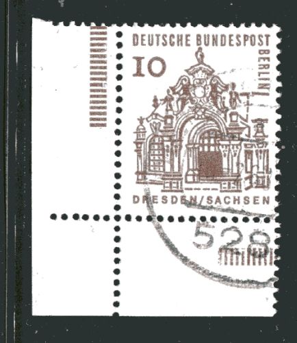 1964 Mi.Nr. 242aW , 10 Pfennig Deutsche Bauwerke, Bogenecke unten links, aus Markenheftchenbogen.
