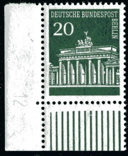 1966 Mi.Nr. 287 , 20 Pfennig Brandenburger Tor, Bogenecke unten links.