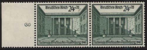 1940 Mi.Nr. 743 /, Briefmarkenausstellung, 2 Marken mit Seitenrand links, 1 Marke kleine Punkte im Gummi, Marken Originalgummi, am Bogenrand Falz. Mi.(43.--)Euro.