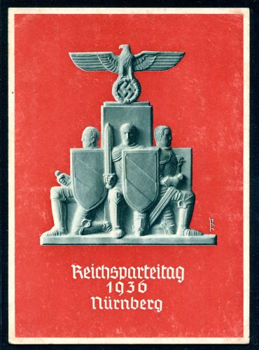 1936 "Festpostkarte Reichsparteitag der NSDAP in Nürnberg 8.-14 September 1936". Farbkarte ungebraucht, etwas unfrisch.