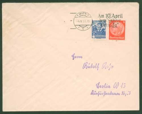 4.IV.33 Wien Stempel mit Zusatzstempel (Am 10. April dem Führer dein Ja) in guter Erhaltung.