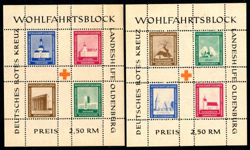 1948 Block 1A und Block 2A , gezähnt. Private Blockausgabe Landeshilfe Oldenburg. Mit Zeitdokument von 1956 vom Fachorgan der Berliner Philatelisten Börse e. V.
