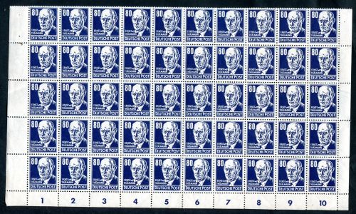 1952 Mi.Nr. 339 mit 339 III , 50 Marken im halben Bogen - Unterteil mit Plattenfehler. Mi.(400.--)Euro.