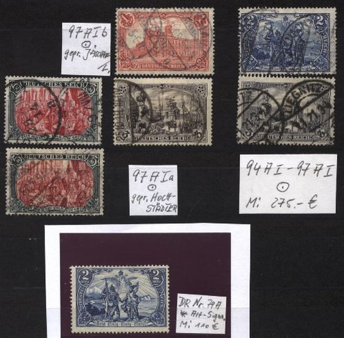 LIQUIDATIONSPOSTEN. 1902 bis 1905 Mi.Nr. 79A, 94AI/97AI, 97AIa, 97AIb , zum Teil geprüft. Besichtigen.