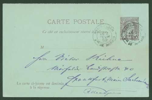 1892 P2 10/10 C. Ausland GAPK, bedarfsgebraucht, ab Monte Carlo 2.2.1892 nach FfM-Sachsenhausen, sehr saubere Erhaltung.