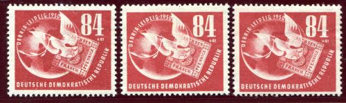 1950 Mi.Nr. 260 , Briefmarkenausstellung DEBRIA, 3 Marken mit minimale Mängel. Mi.(144.--)Euro.