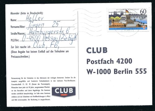 1992 Mi.Nr. 1583x , 2000 Jahre Koblenz, ohne Fluoreszenz, (weißes Papier) Postkarte echt befördert nach Berlin, in tadelloser Erhaltung. Mi.(50.--)Euro.