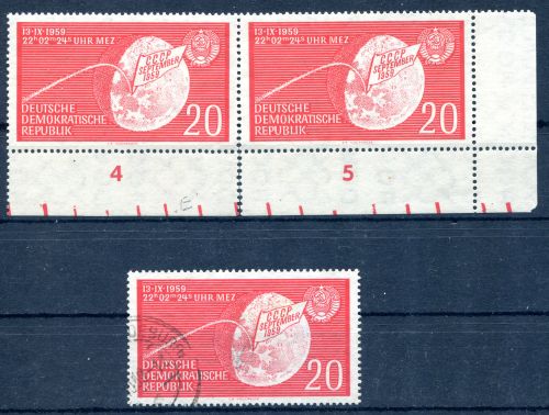 LIQUIDATIONSPOSTEN. 1959 Mi.Nr. 721I, und 721 , 20 Pfennig Lunik , vom Unterrand, linke Marke mit Abart I. , weitere Marke 721 . Mi.(90.--)Euro.