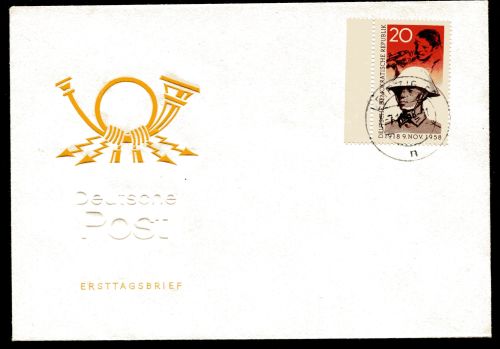 1958 Mi.Nr. 662 , , EF, 20 Pfennig Novemberrevolution - Soldat mit Tagesstempel Leipzig 7.11.58 ohne Anschrift.