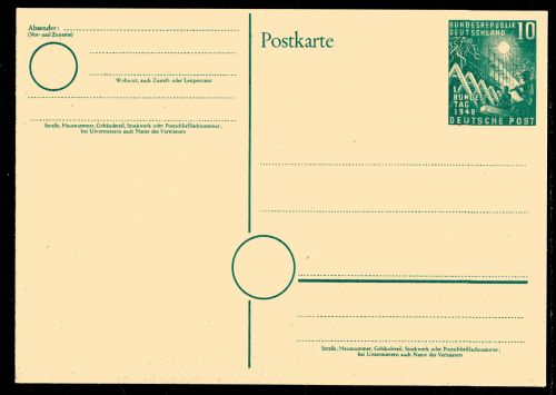LIQUIDATIONSPOSTEN. 1949 Bundesrepublik Postkarte PSo 1, ungebracht. Mi.Nr. 111, grün.