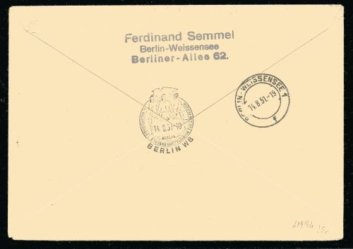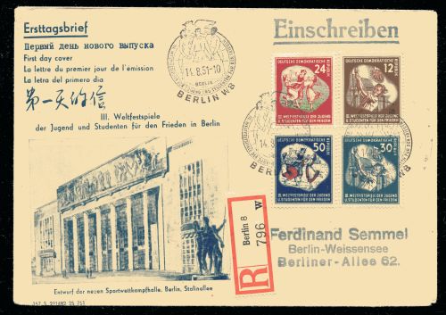 1951 Mi.Nr. 289/92 , , Satzbrief Weltfestspiele per R-Brief ab Berlin 14.8.51 Sonderstempel nach Berlin - Weissensee. rs. Ankunftstempel.