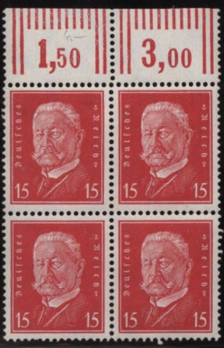 1928 Mi.Nr. 414 , , Reichspräsident Hindenburg mit Oberrand.