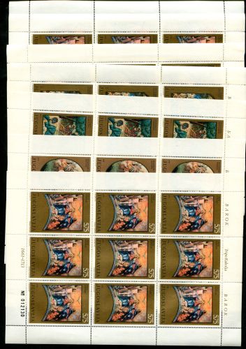 LIQUIDATIONSPOSTEN. Jugoslawien 1970 Mi. Nr. 1400/05 , Kleinbogensatz "Religiöse Kunst". Zusätzlich Mi.Nr. 1505 2 Kleinbögen, in tadelloser Erhaltung.