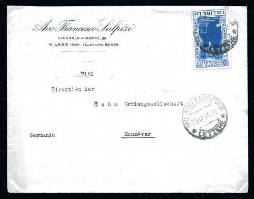 1934 Mi.Nr. 489 , , EF, 1,25 Lire Italien, ab Milano Ferrovia 23.11.34 nach Hannover.