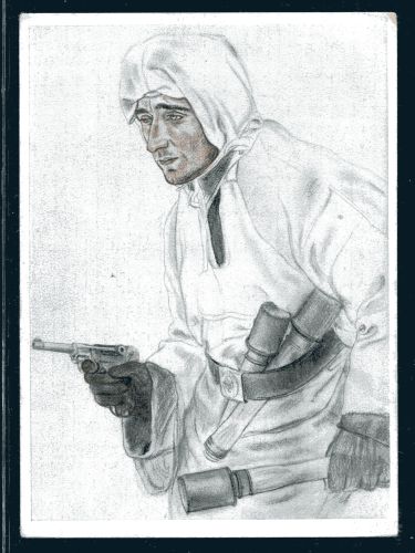 WILLRICH KARTE. Männer der Westfront. Einer unserer erfolgreichsten Spähtruppenführer im Schneetarnhemd.