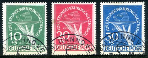1949 Mi.Nr. 68/70 , Währungsgeschädigte, kompletter Satz mit Sonderstempel und Hannover - Messestempel. Mi.(600.--)Euro.