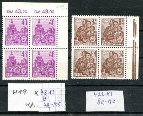 1953 Mi.Nr. 419XI , , aus Bogenecke oben rechts. Mi.Nr. 422XI , , rechter Bogenrand mit Farbstreifen.