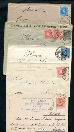 1901-1903 3 Altbriefe nach Dresden und 1 Karte nach Madrid.