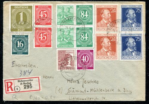 1948 Frankatur Arbeiter, Ziffern und Stephan, R-Brief ab Birkenwerder b. Berlin 24.6.48 nach Summt - Mühlenbeck b. Berlin.