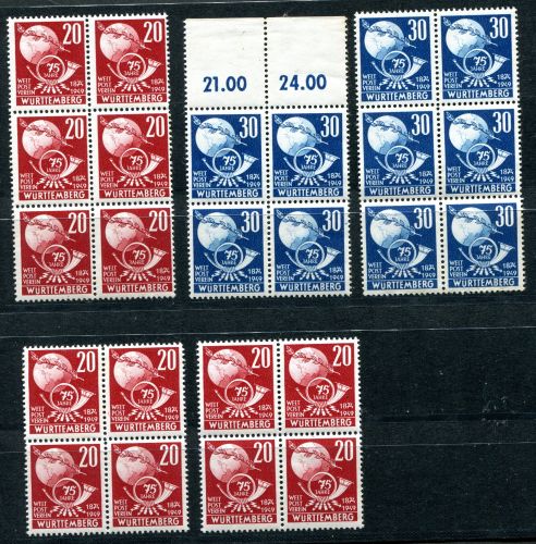 1949 Mi.Nr. 51/52 Württemberg, 75 Jahre Weltkongress im 6er und 4er Block , zusätzlich Mi.Nr. 51 im 4er Block kleine Haftstellen. "Nicht bewertet". Mi.(130.--)Euro.