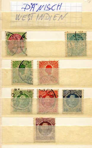 Dänisch - Westindien 8 gestempelte Briefmarken. Ansehen.