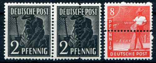 1947 Mi.Nr. 943 und 945 , mit Verzähnung 2 Pf. und 8 Pf. mittig gezähnt.