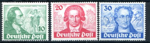 1949 Mi.Nr. 61/63 , Goethe, kompletter Satz, sauber gezähnt. Mi.(320.-)Euro.