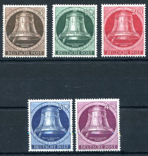 1951 Mi.Nr. 75/79 , Glocke Klöppel links, kompletter Satz, alle 5 Werte .(100.--)Euro.