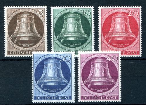 1951 Mi.Nr. 75/79 , Glocke Klöppel links, kompletter Satz, alle 5 Werte .(100.--)Euro.