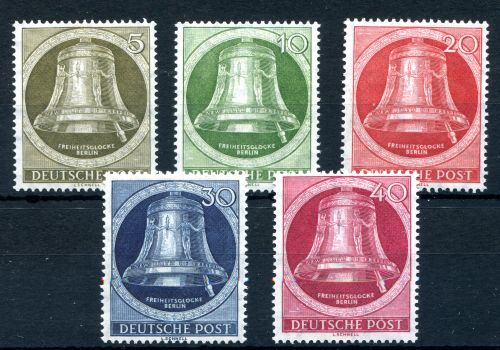 1951 Mi.Nr. 82/86 , Glocke Klöppel rechts, 5 Werte kompletter Satz. (Mi.120.--)Euro.