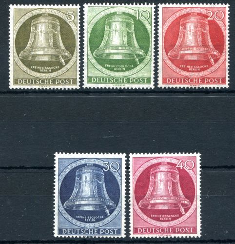 1951 Mi.Nr. 82/86 , Glocke Klöppel rechts, 5 Werte kompletter Satz. (Mi.120.--)Euro.
