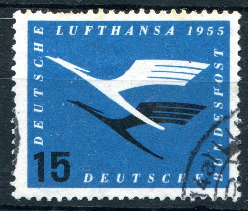 1955 Mi.Nr. 207 , 15 Pfennig Lufthansa mit Plattenfehler (Kreis) am (P) von Post. Im Mi. noch nicht bewertet.