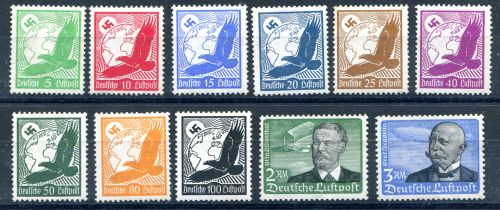 1934 Mi.Nr. 529/39 / Flugpostmarken, kompletter Satz 11 Werte teilt kaum zu sehende Falzspur. Günstig. Für Mi. 800.--)Euro.