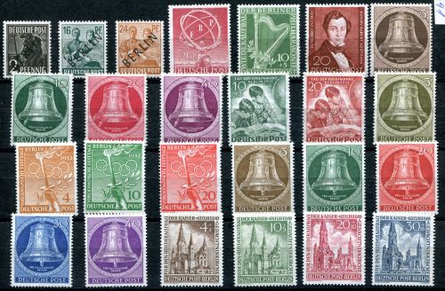 1948 bis 1953 Berlin Lot , mit Schwarzaufdruck bis Gedächtniskirche, 25 Werte postfrisch ohne Mängel, Mi. ca. 450.--Euro. Preiswerter Ausruf.