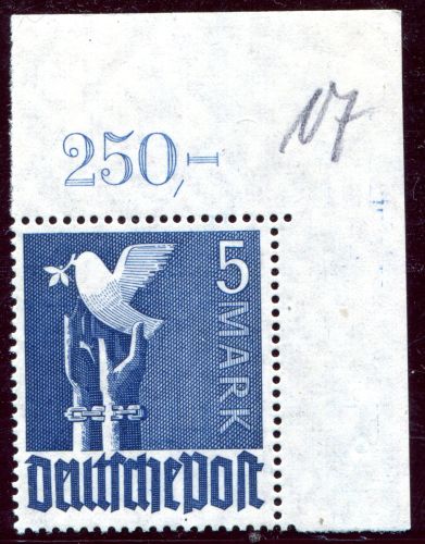 1947 Mi.Nr. 962 , Platte, OR ndgz. 5 Mark, aus der Bogenecke oben rechts, langer Oberrand. Kontrollratsausgabe II.