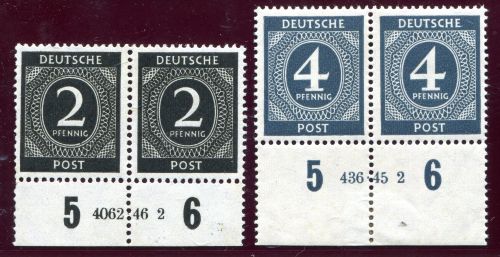 1946 Mi.Nr. 912 und 914 , , 2 und 4 Pfennig, mit HAN Nr. "4062,46 2 und 436.45 2". Alliiert Besetzung Kontrollratsausgabe I.