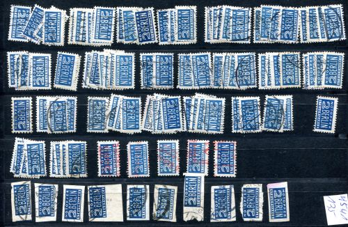 1948 Mi.Nr 2 , über 100 Marken 2 Pfennig Notopfer Berlin, sowie 10 Marken Mi.Nr. 1 , geschnitten, auf einer Steckkarte.