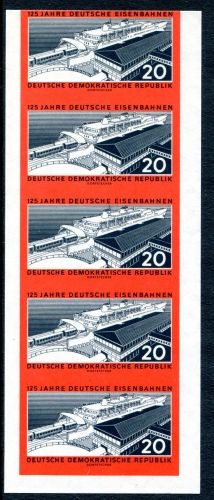 1960 Mi.Nr. 805B , Neuer Bahnhof "Sassnitz" im 5er Streifen.