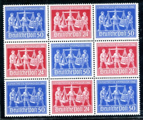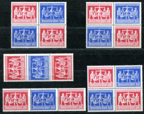 1948 Mi.Nr. 969/970 , Exportmesse Hannover, Zusammendrucke, dabei 4mal VZd2, 1mal Wzd2, Wzd4 SZd2 SWZd4 zusammen Mi.(320.--)Euro.