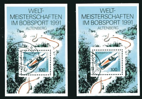 1991 Bl. 23 fB , blauer Fleck zwischen "E und R", in guter Erhaltung. 2 Blocks.