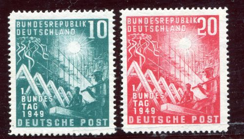 1949 Mi.Nr. 111/12 , Eröffnung des erster Deutschen Bundestages, kompletter Satz. Mi.(100.--)Euro.